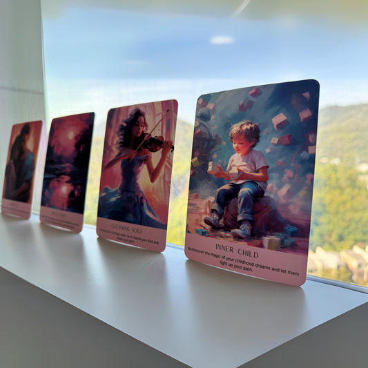 In addition to our oracle cards, we offer deep-dive reading reports. Our mission is to empower individuals through creativity and mindfulness, guiding people to navigate life's challenges with clarity and confidence. Join us on this journey to spark your inner light and embrace a path of peace and fulfillment.